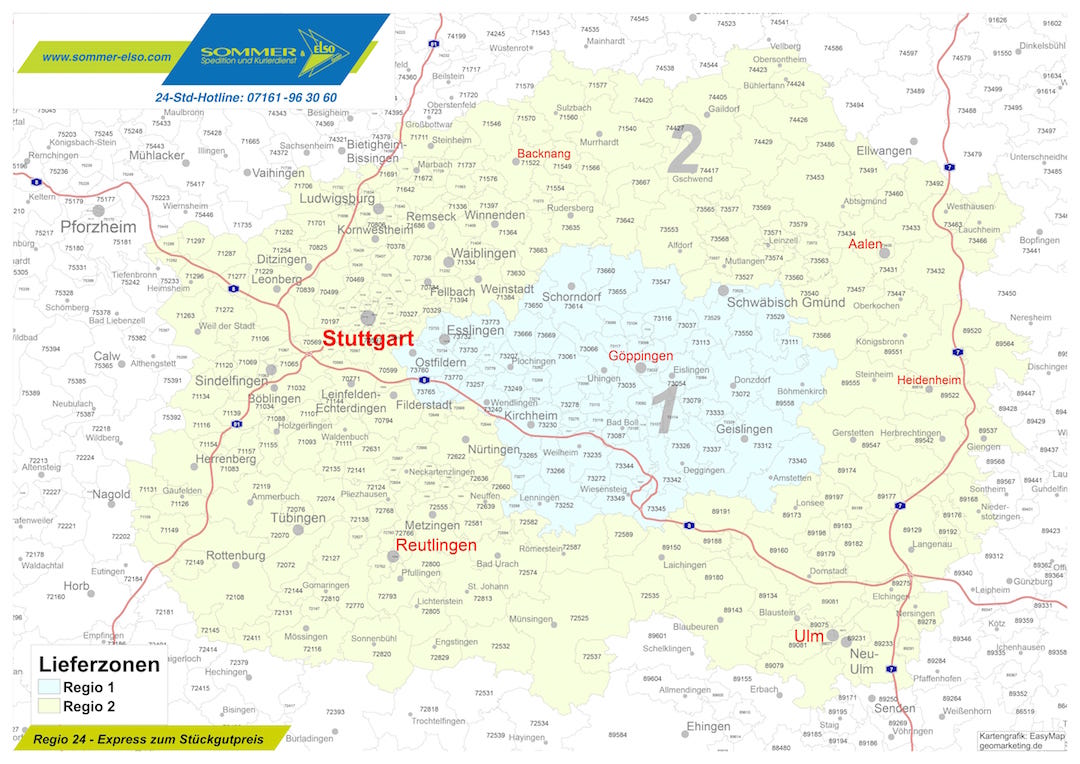 Lieferungen von Lieferzone Regio 2 nach Regio 2 nach Absprache möglich.